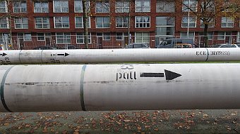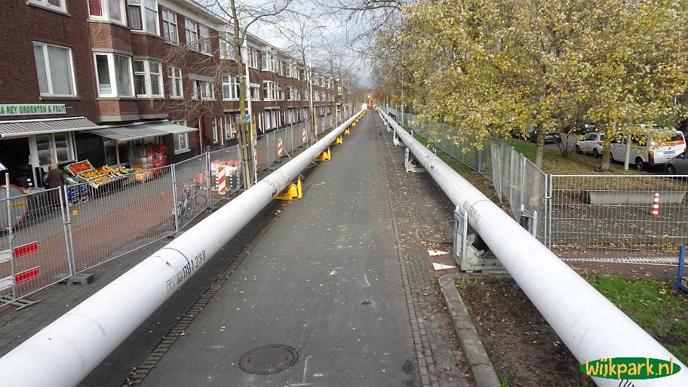 Kruising Dierenselaan / De la Reyweg Dierenselaan / De la Reyweg Ondergrondse boring warmwaterleiding, lengte 900 meter, diepte leiding 2 - 25 meter De la Reyweg richting Veluweplein De la Reyweg kruising Kempstraat